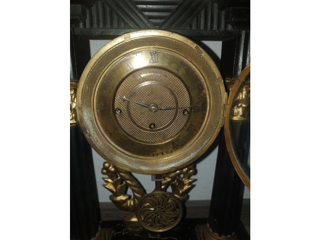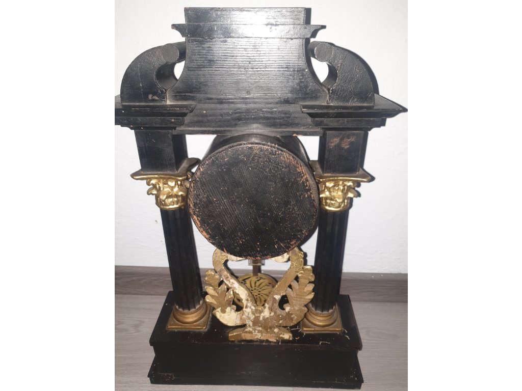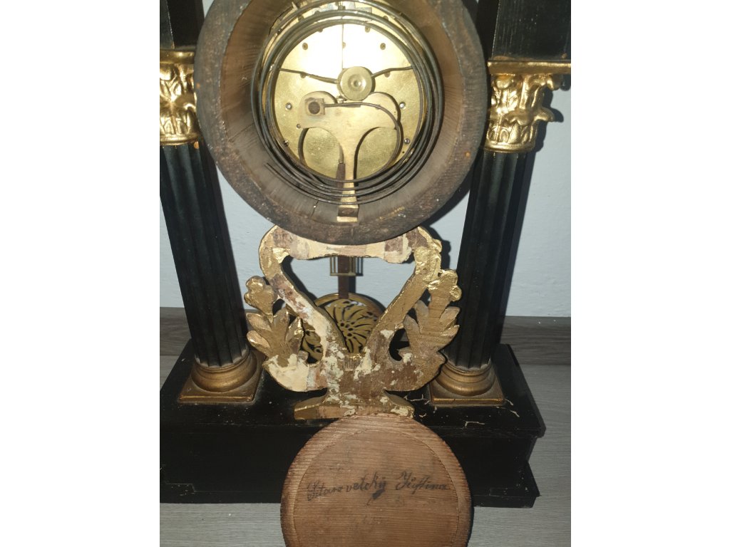 Stĺpikové hodiny v štýle Biedermaier, vyrobené v rokoch 1860-1880. Hodiny sú funkčné, odbíjajú štvrť hodiny, ale je potrebné prečistenie a nastavenie hodinárom. Takisto sú prítomné aj estetické chyby dreva. Vzhľadom na vek hodín sú v dobrom stave.