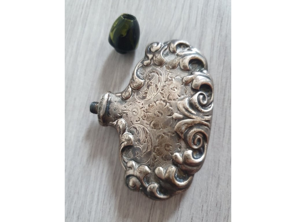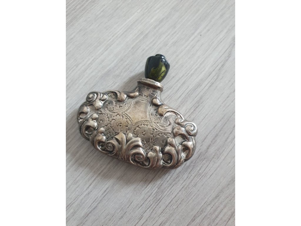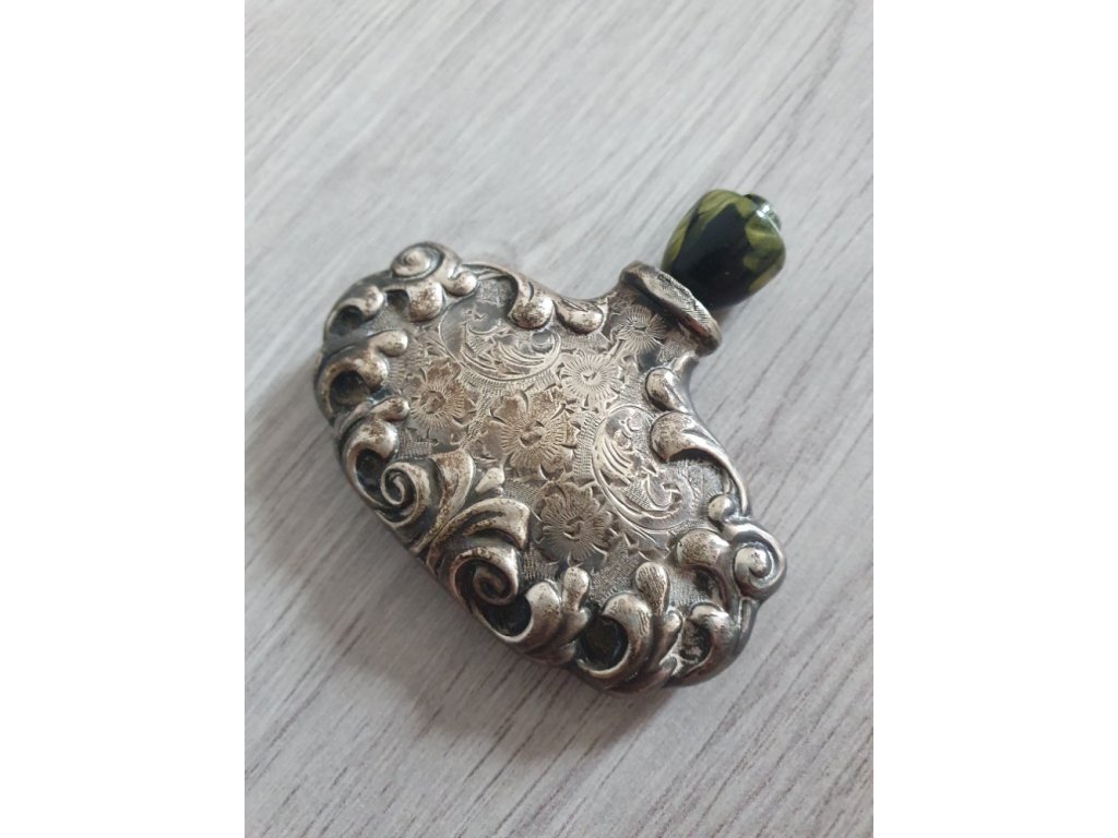 Starý strieborný flakón o rýdzosti 800/1000Ag, rozmery 5,5cm x 5,5cm. Vyrobený okolo roku 1930.